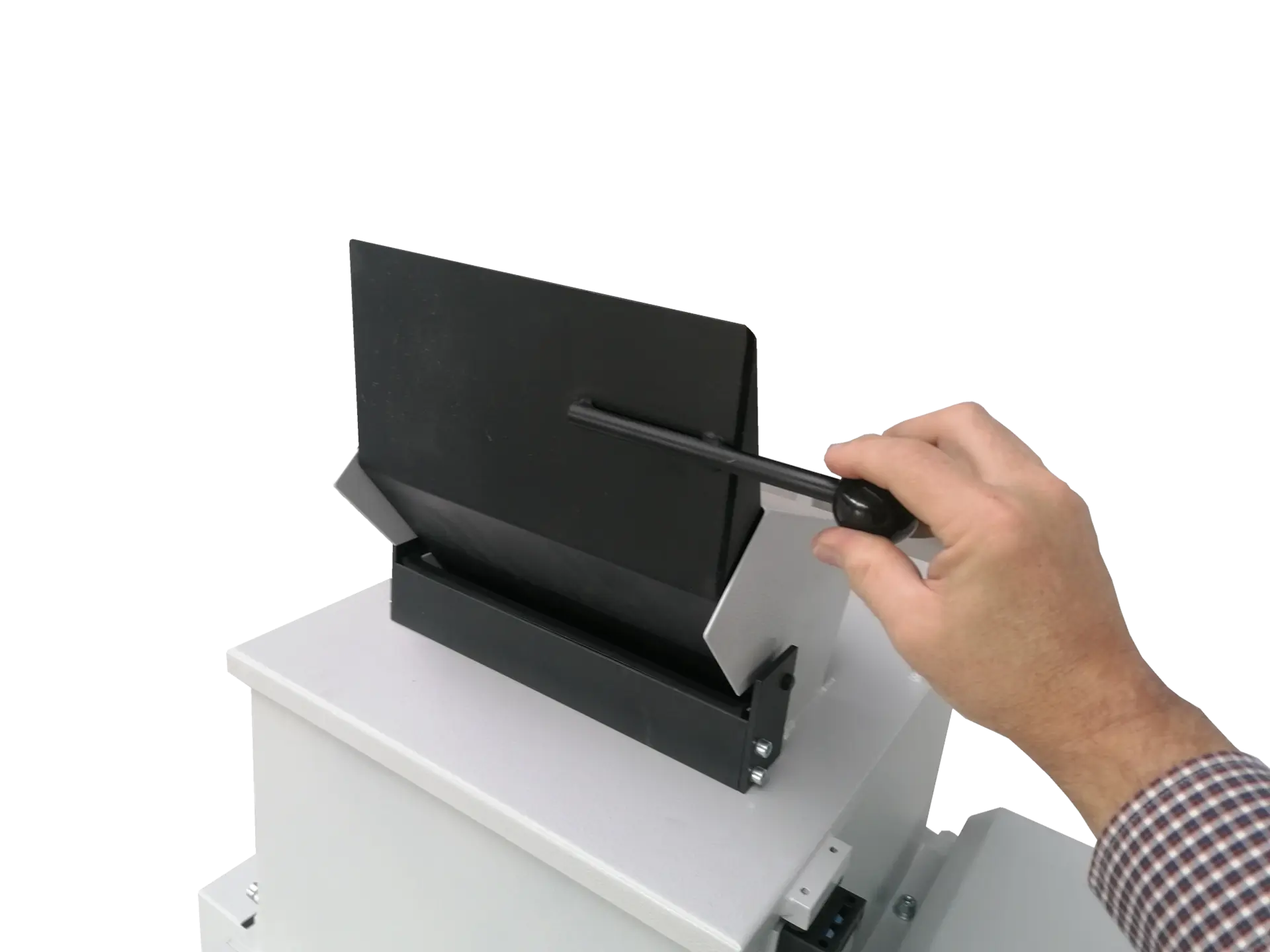 Via matningsöppningen under det övre locket kan media matas in kontinuerligt till skärblocket. Efter strimlingen är bitarna ca 30 mm stora, om man önskar mindre partiklar monteras ett screen i botten av maskinen som bestämmer slutproduktens storlek.