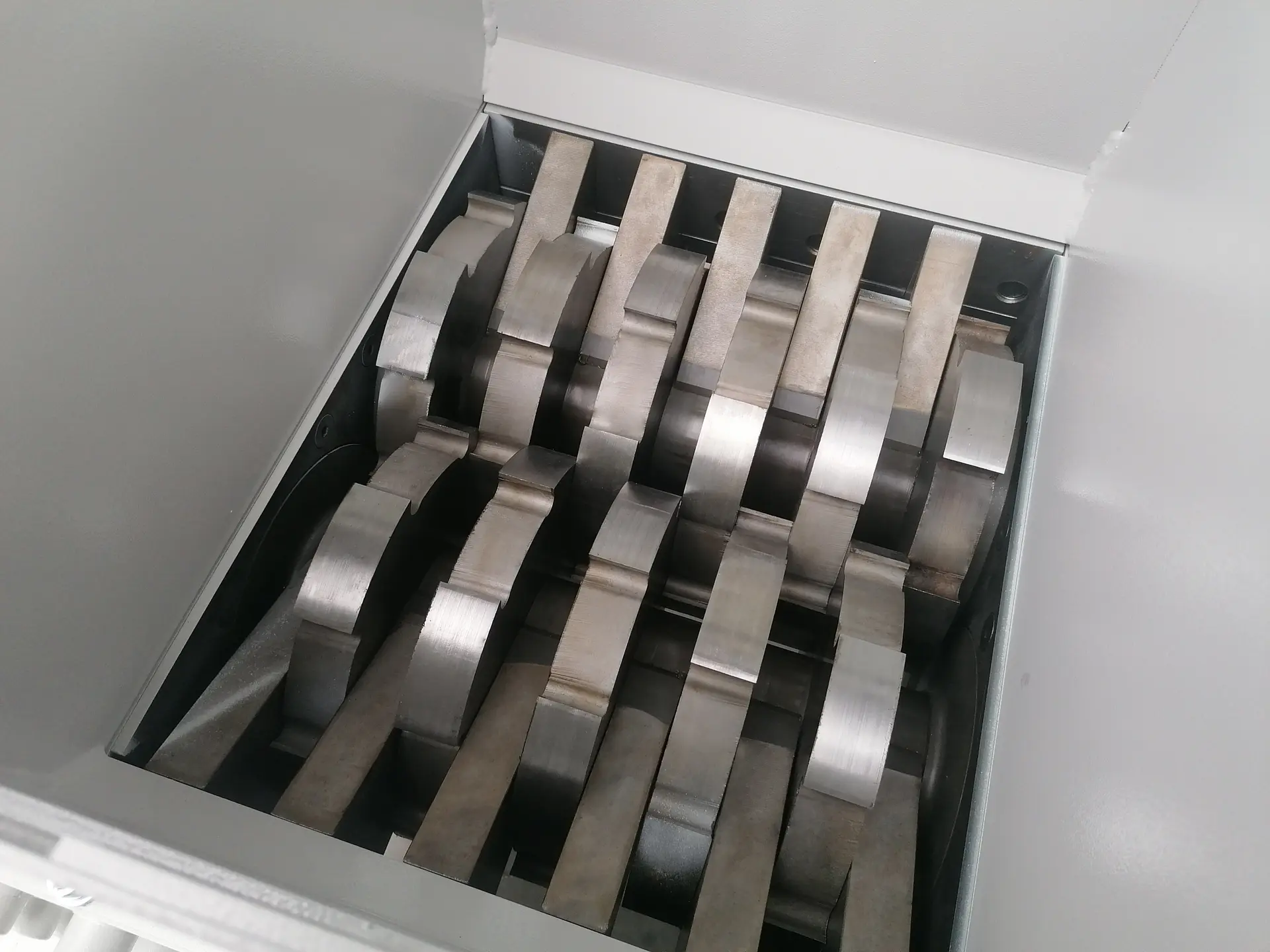 Med sin unika hybridteknik klarar Intimus HDD Granulator med dubbla axlar både strimling och sönderdelning. Den har utvecklats för industri ändamål och strimlingsdelen har 30 mm breda knivar av speciellt verktygsstål och en robust elektrisk kuggdrift. Knivarna är härdade enligt särskilda specifikationer och använder en speciell geometri för perfekt bearbetning av hårddiskar och andra media.