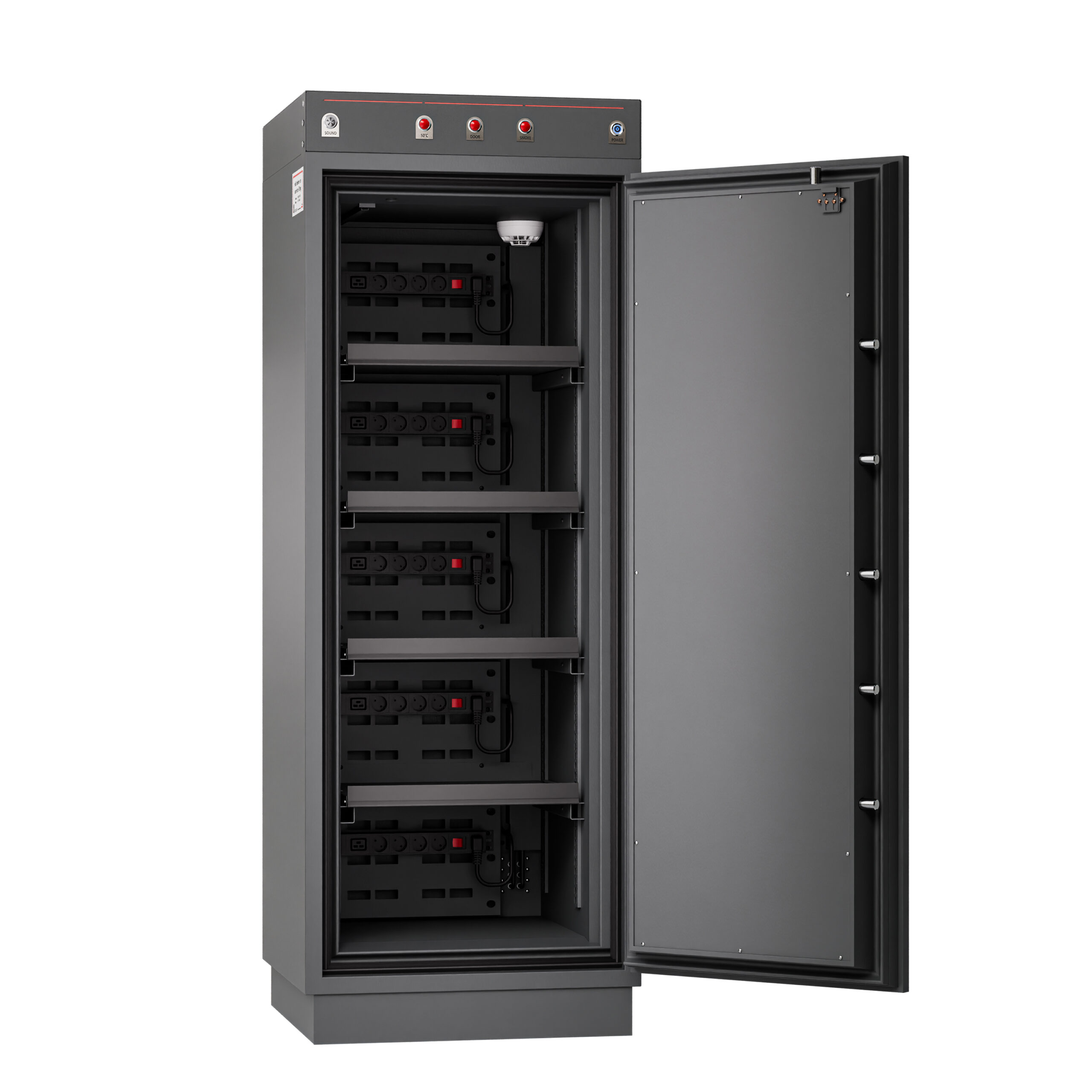 - Brandskyddad batterihylla – motverkar spridning mellan battericeller i skåpet