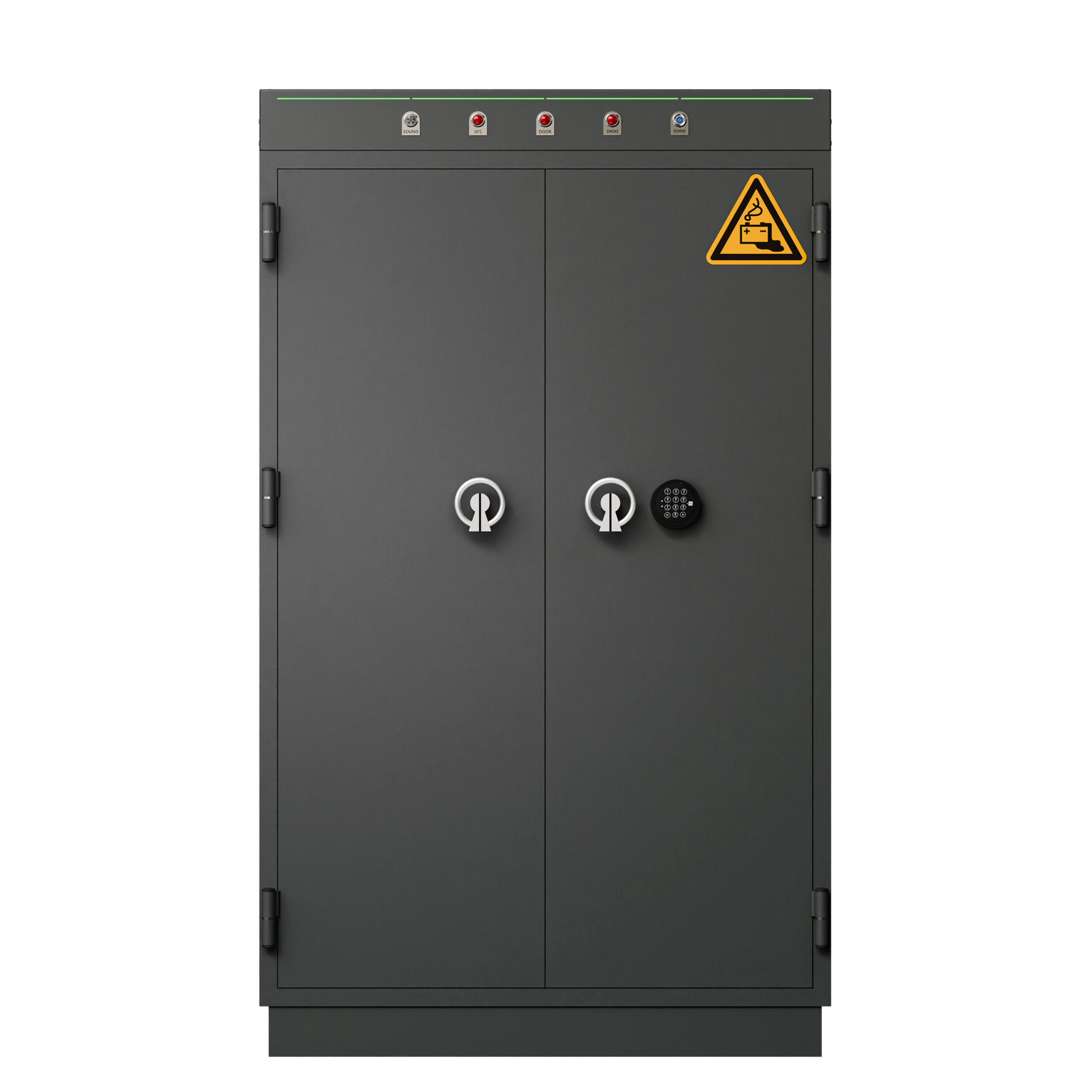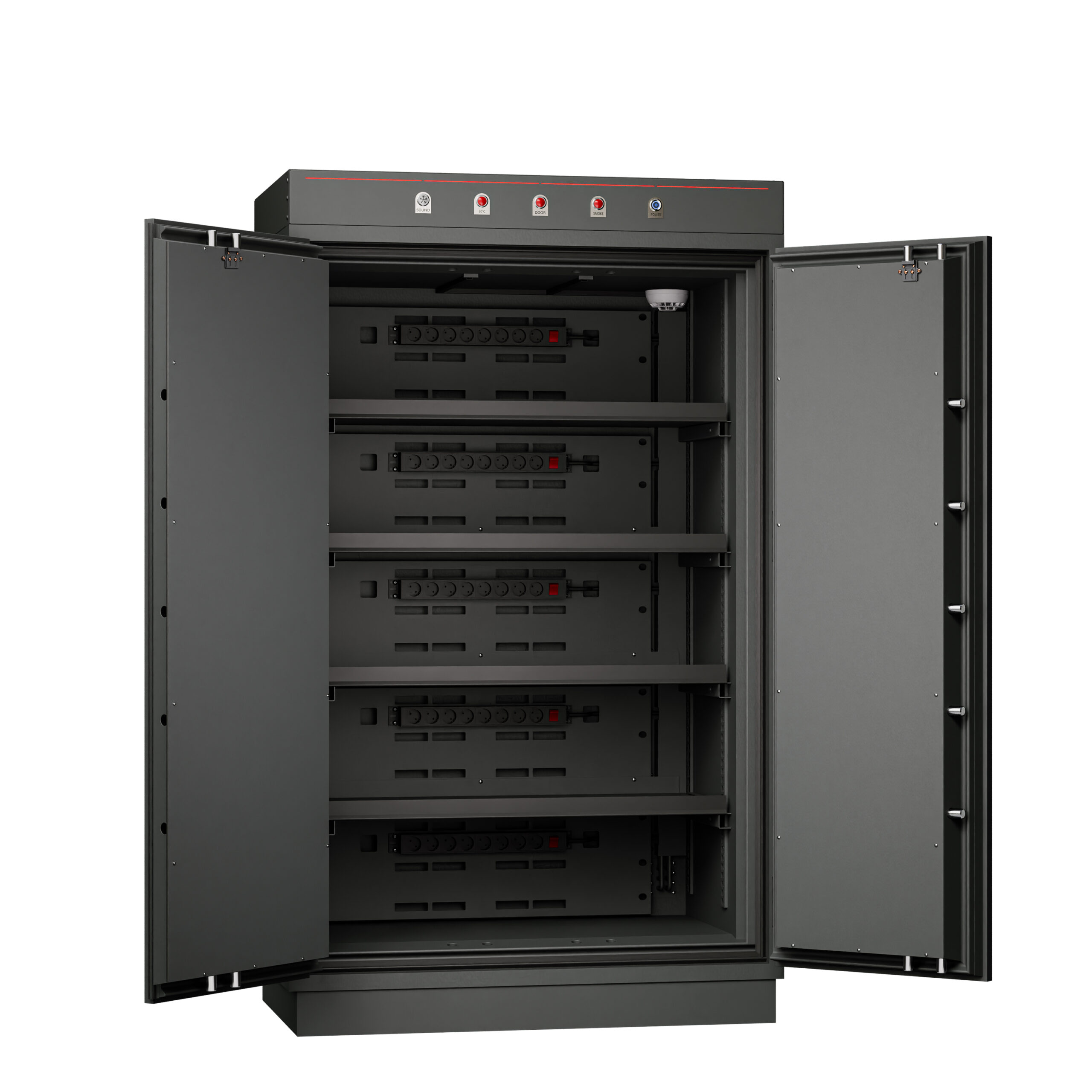 - Brandskyddad batterihylla – motverkar spridning mellan battericeller i skåpet