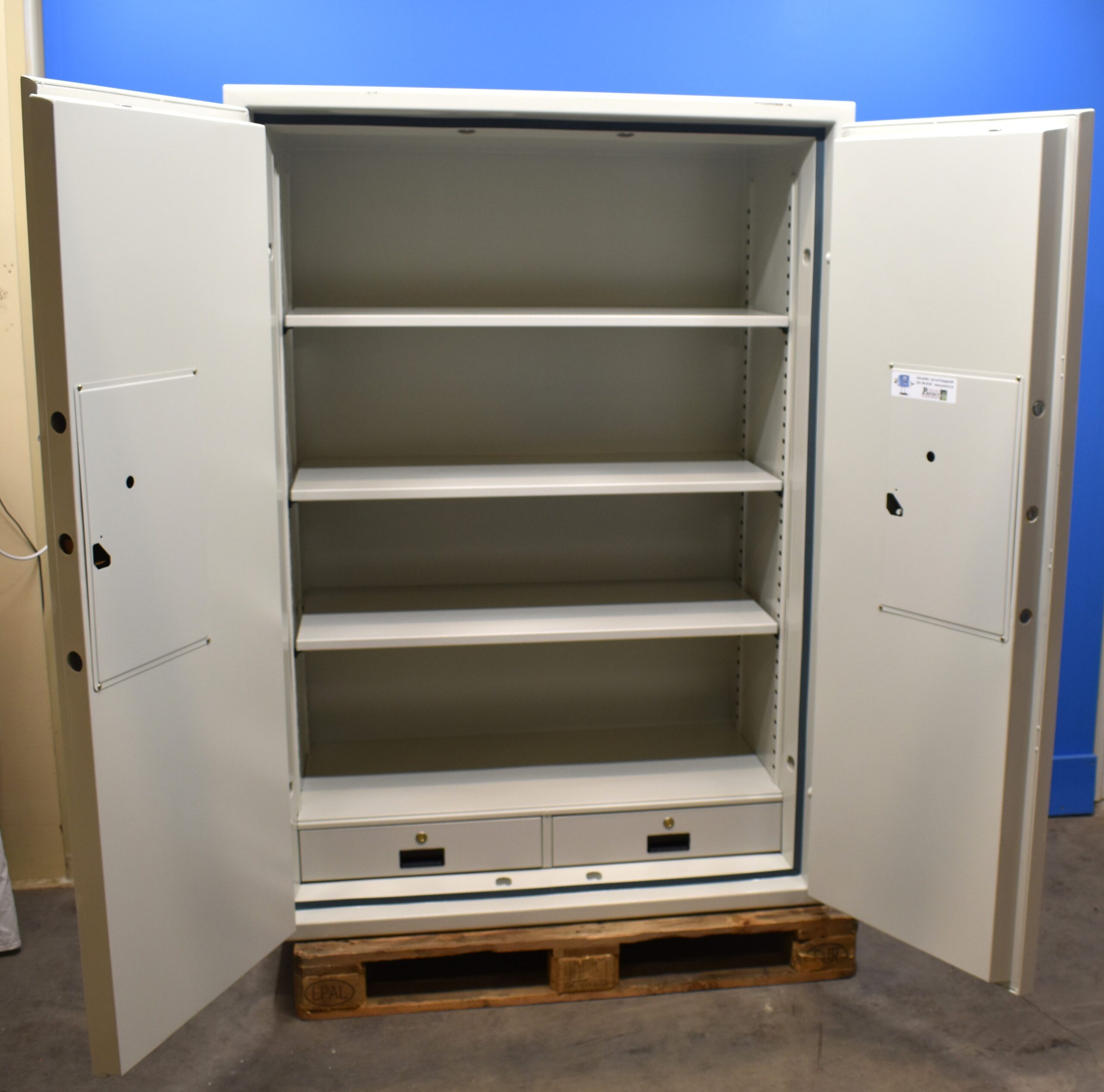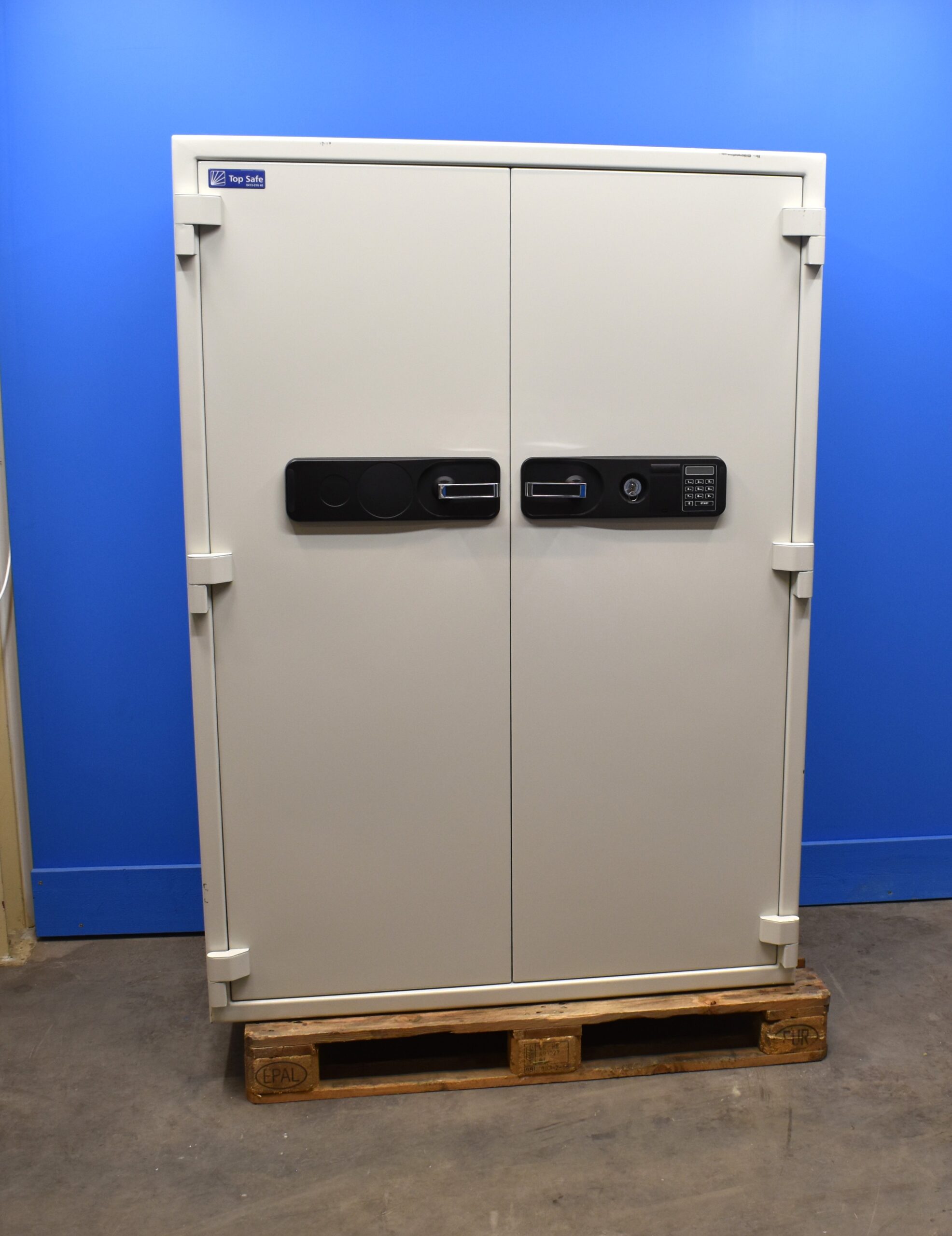 Topsafe ES 700 begagnat dokumentskåp i mycket fint skick, med brandklass 120P och är utrustat med elektroniskt kodlås med nyckel , 3 hyllplan och 2 låsbara lådor. Kapacitet för upp till 68 pärmar.