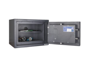 Värdeskåp BR 3045E i snygg design med låg vikt till konkurrenskraftigt pris. Levereras med elkodlås som standard.